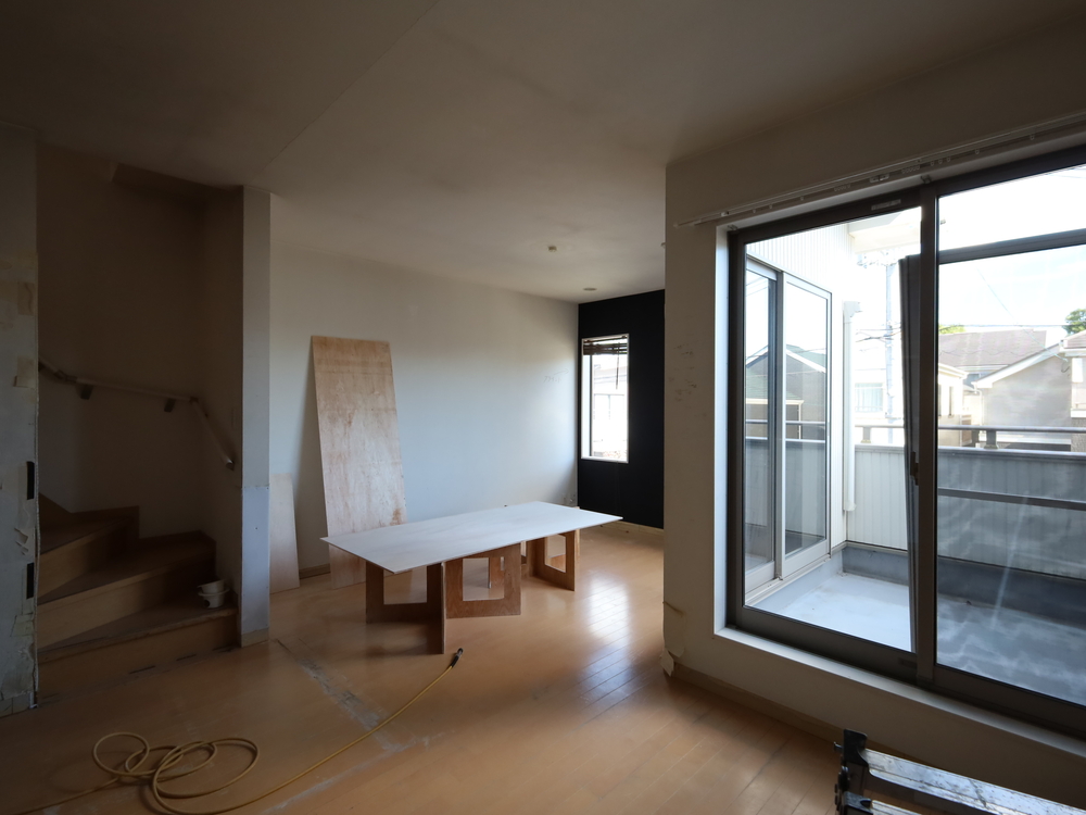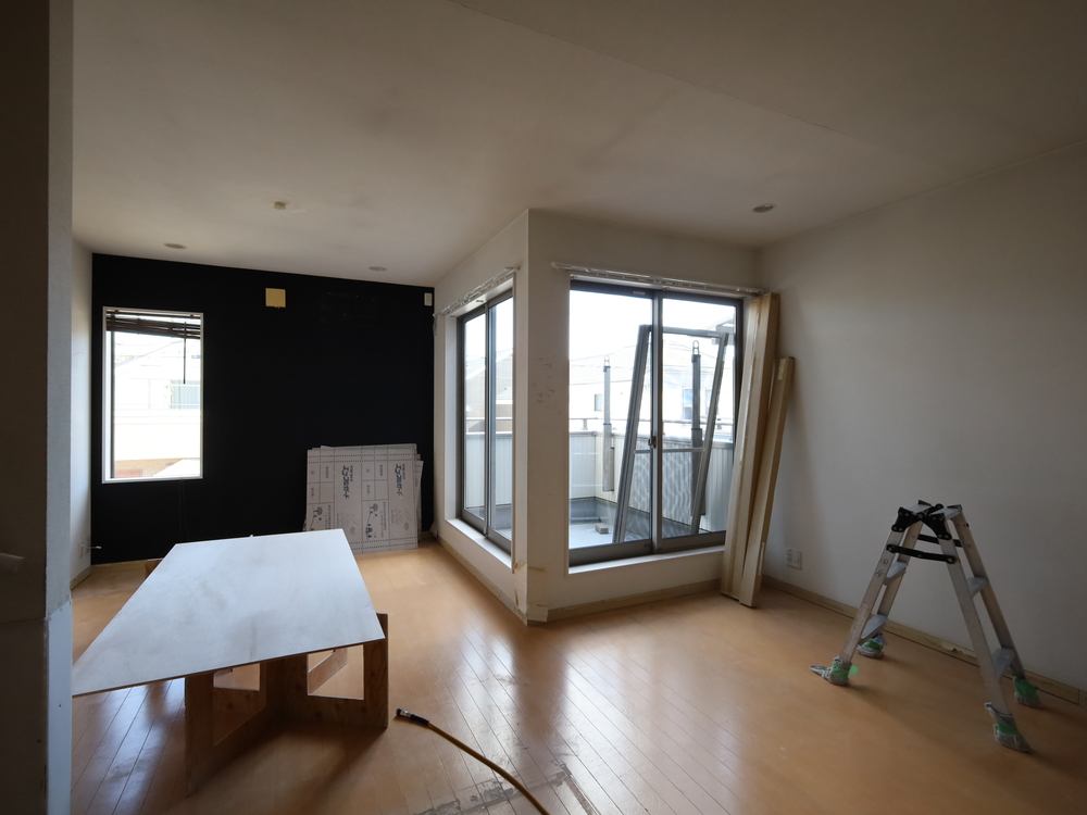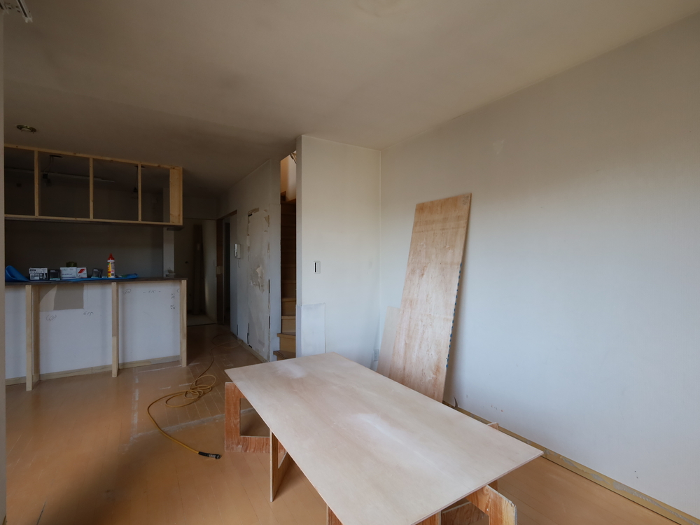 リビングの施工中