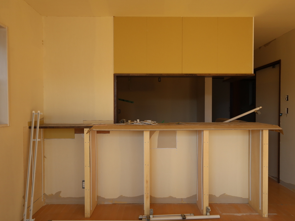 キッチンスペースの施工中