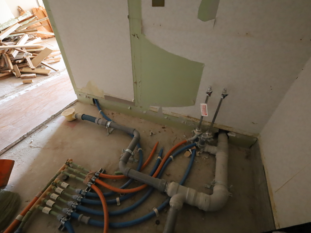 洗面室の施工中