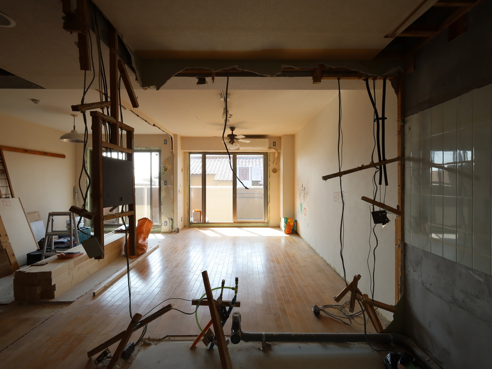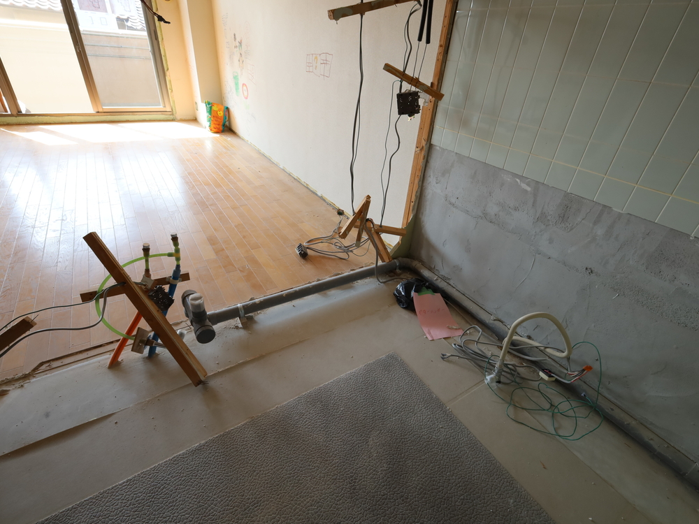 キッチンスペースの施工中
