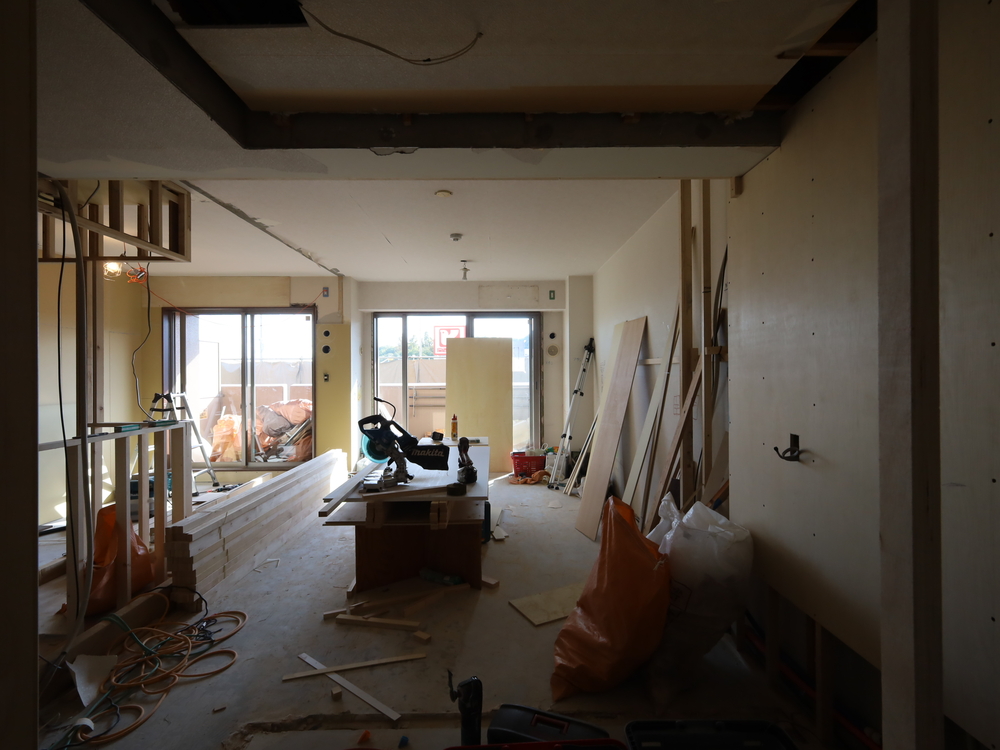 キッチンスペースの施工中