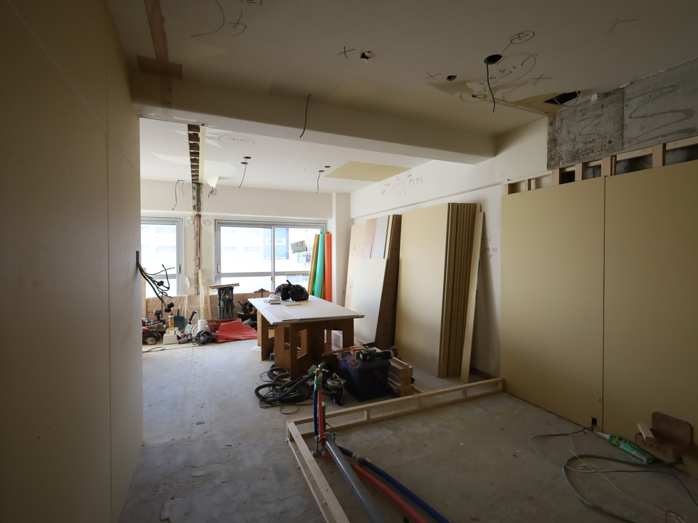 キッチンスペースの施工中