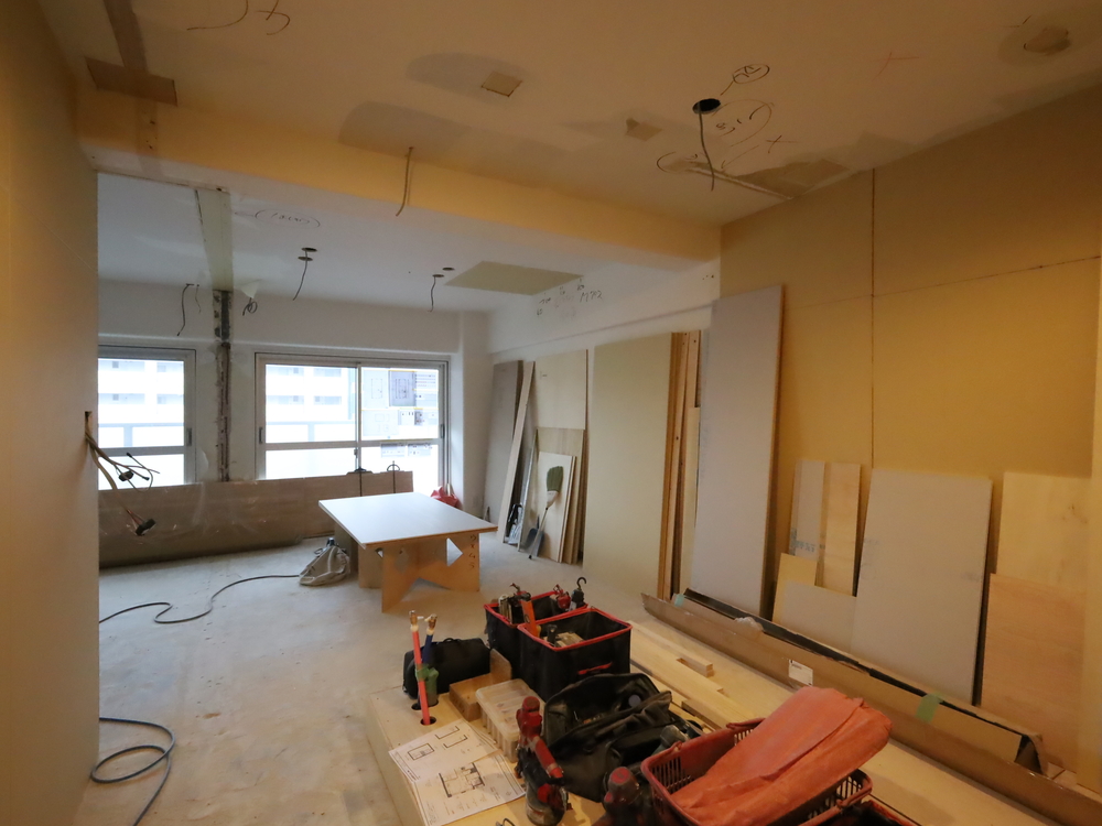 キッチンスペースの施工中