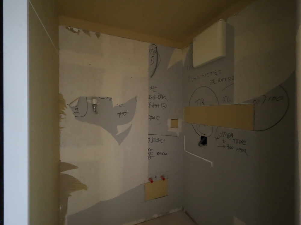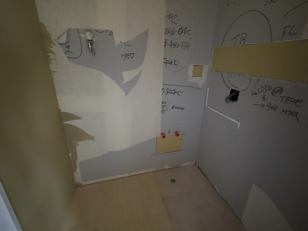 洗面室の施工中