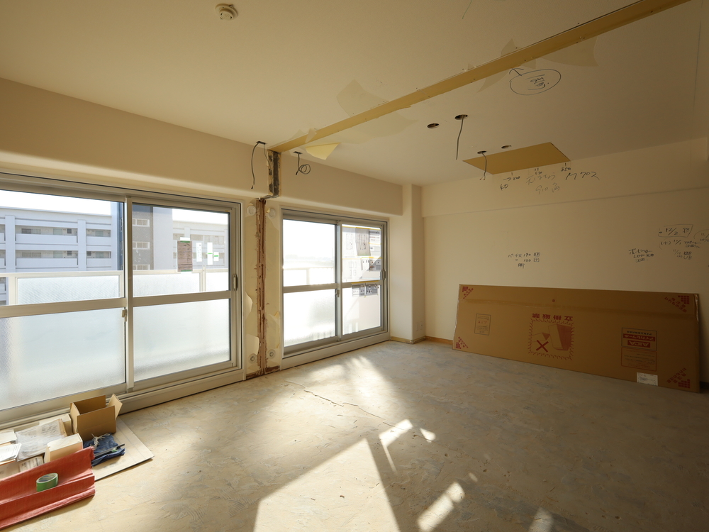 リビングの施工中