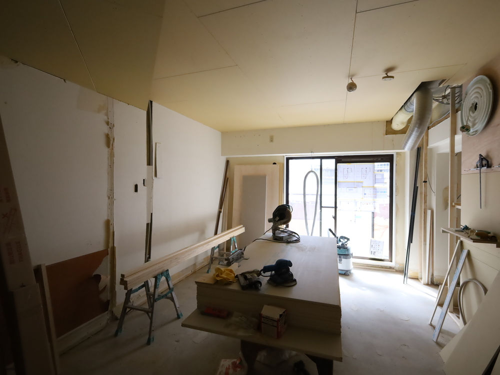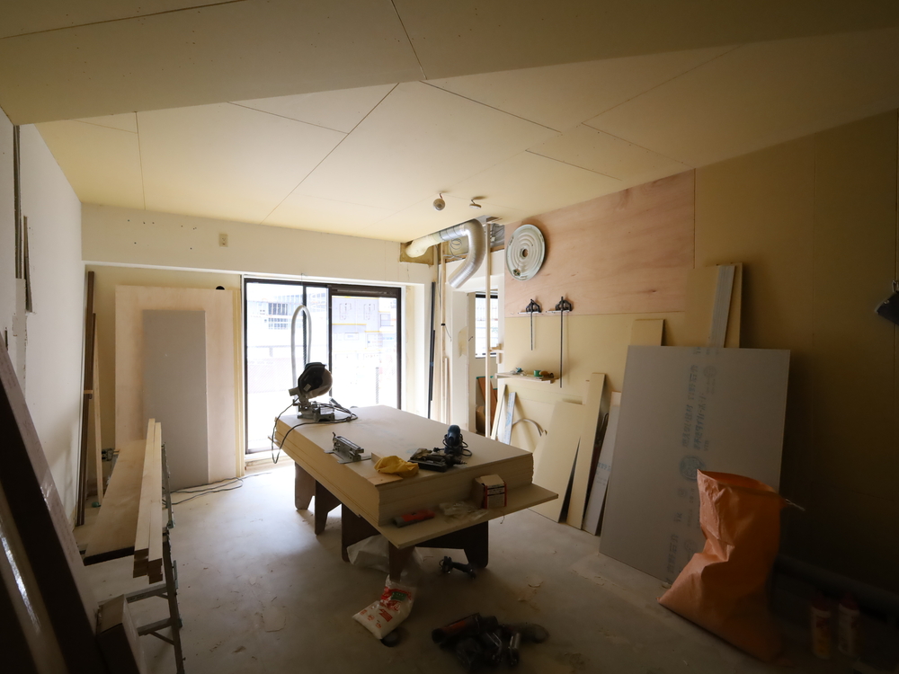 リビングの施工中