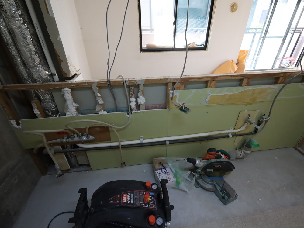 キッチンスペースの施工中