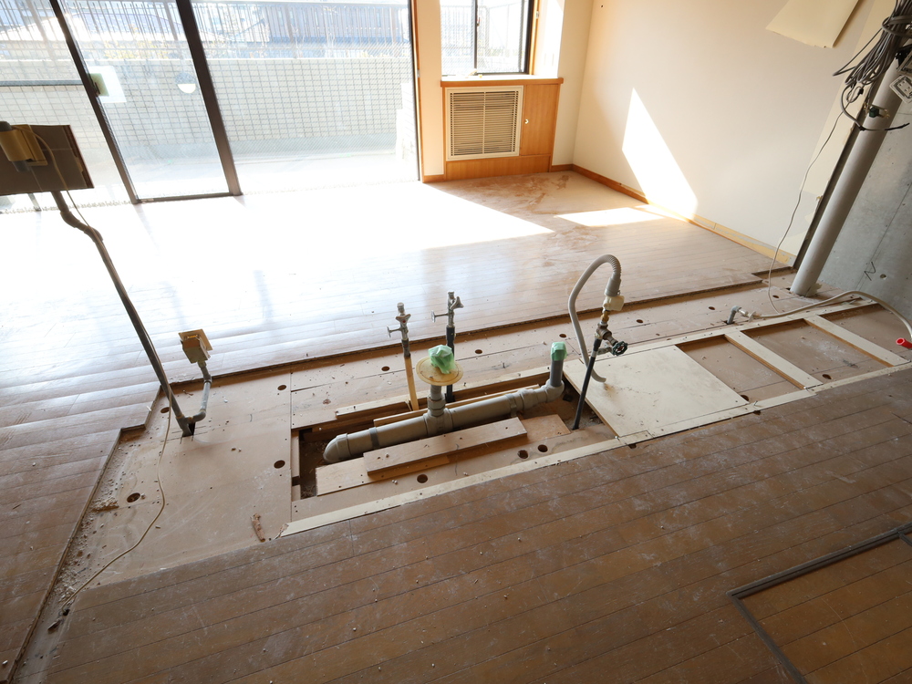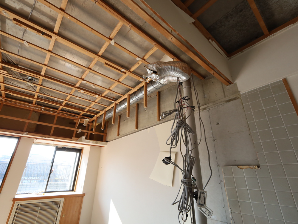 キッチンスペースの施工中