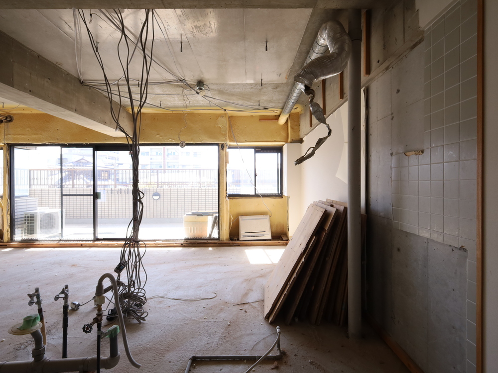 キッチンスペースの施工中