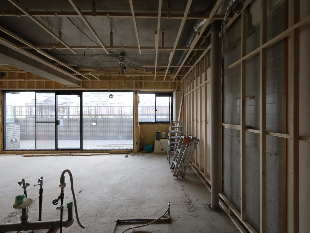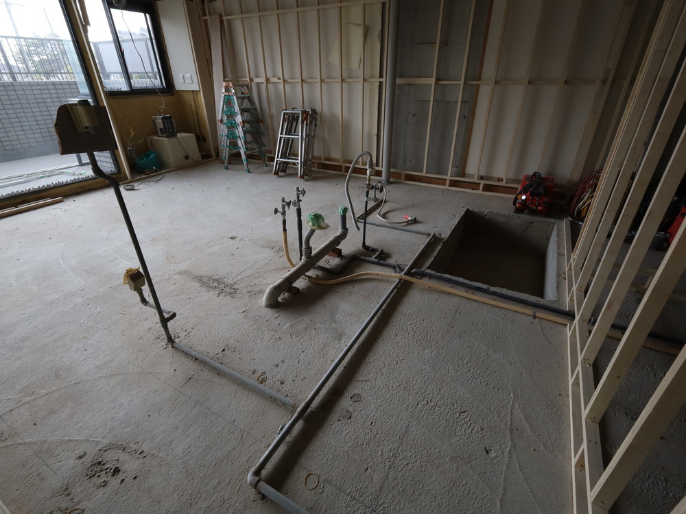 キッチンスペースの施工中