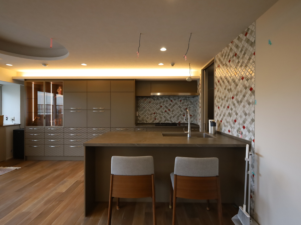 キッチンスペースの施工中