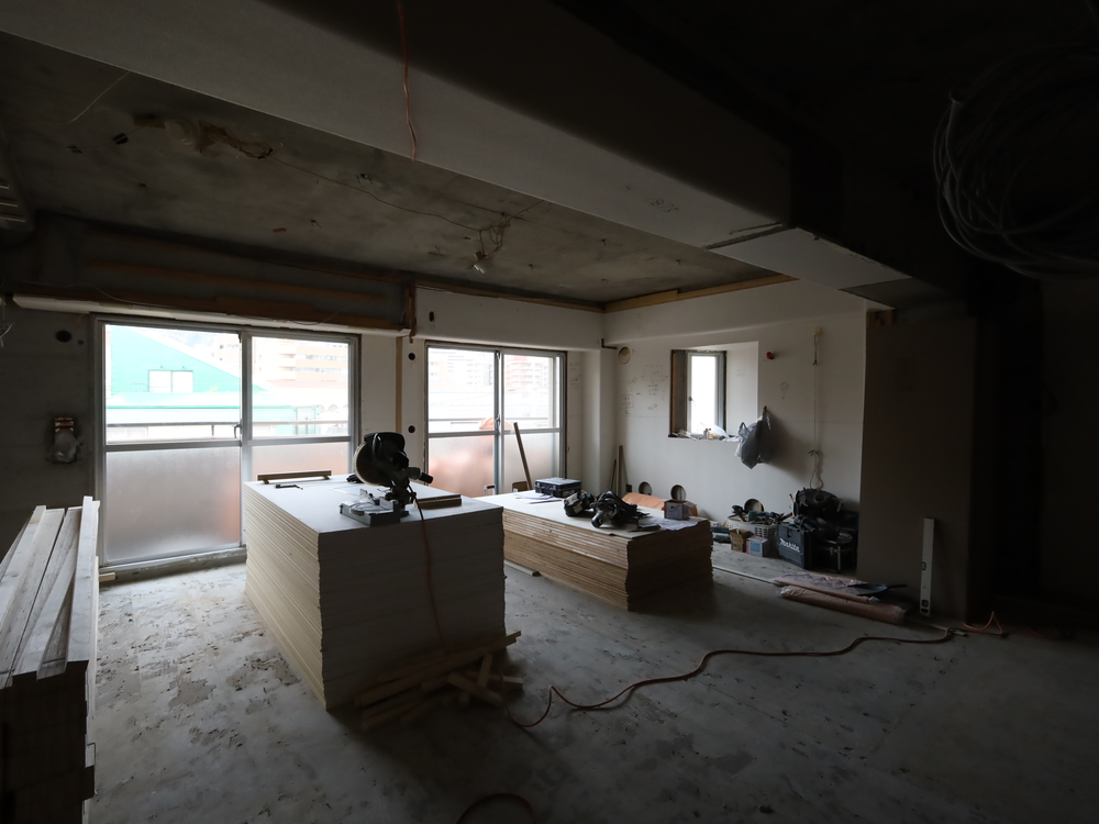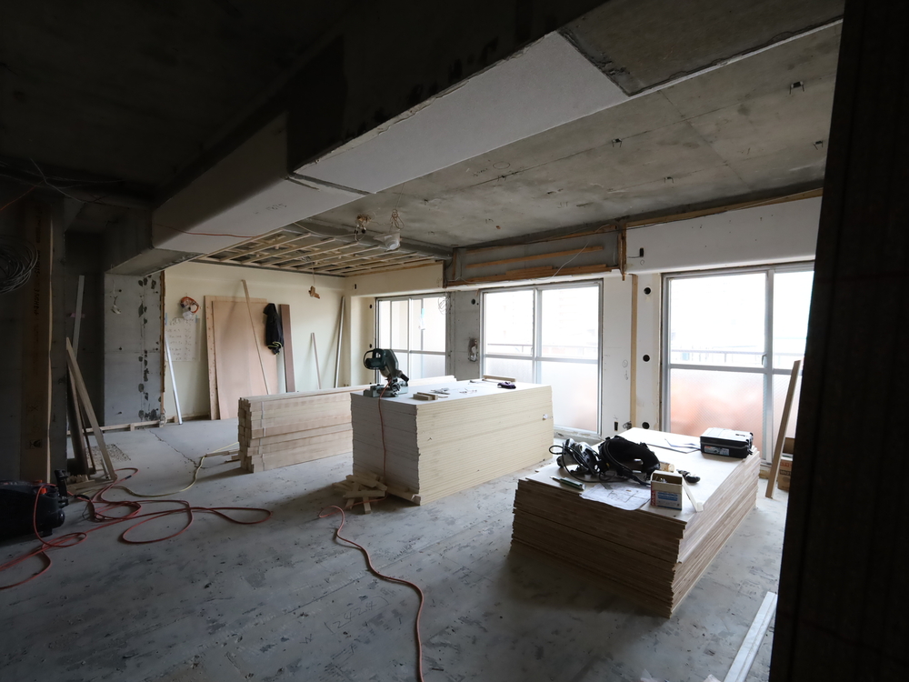 リビングの施工中