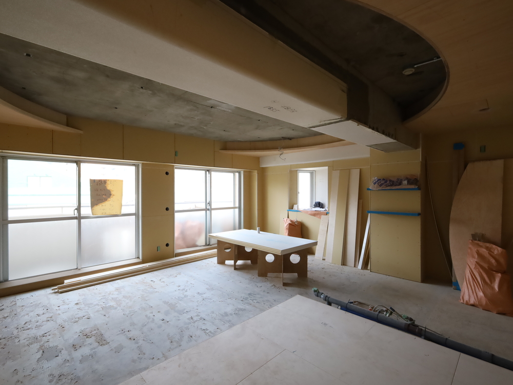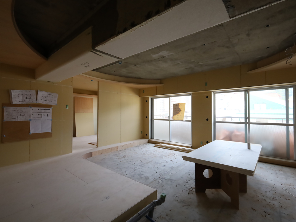 リビングの施工中