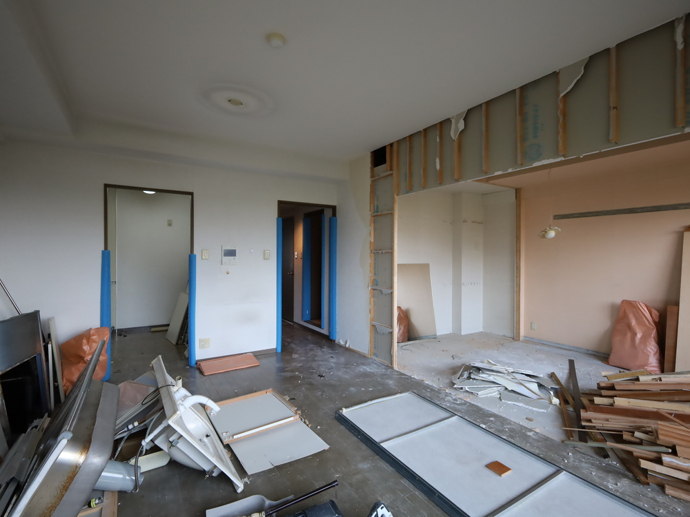 リビングの施工中