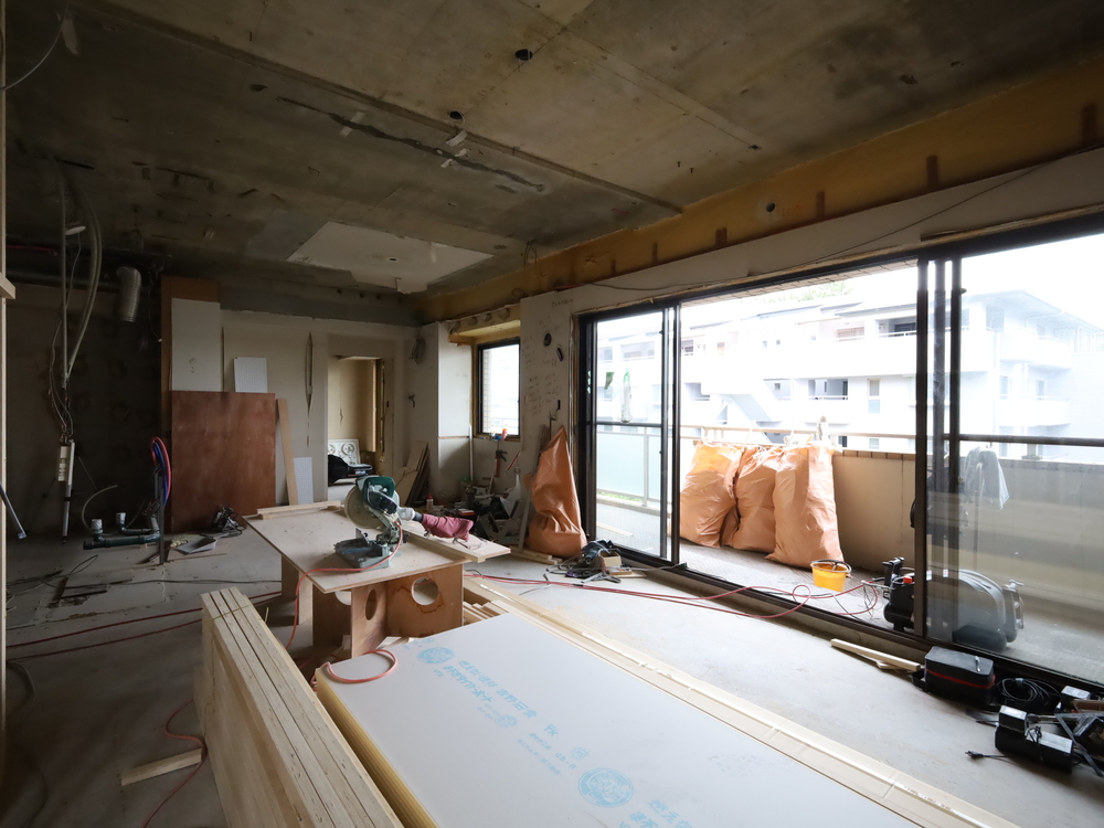 リビングの施工中