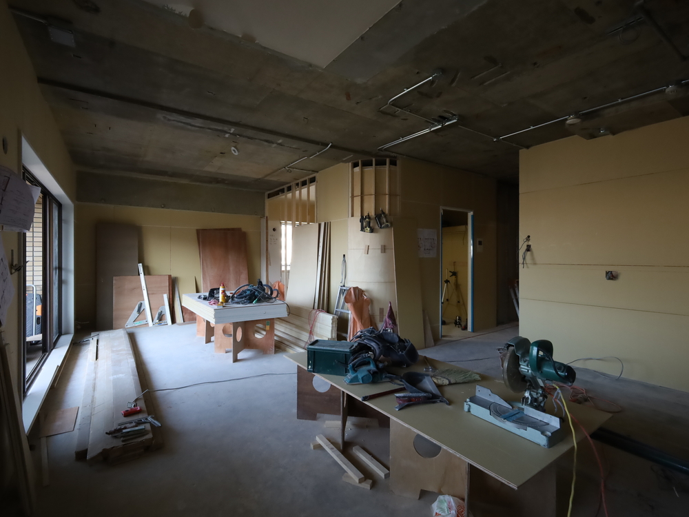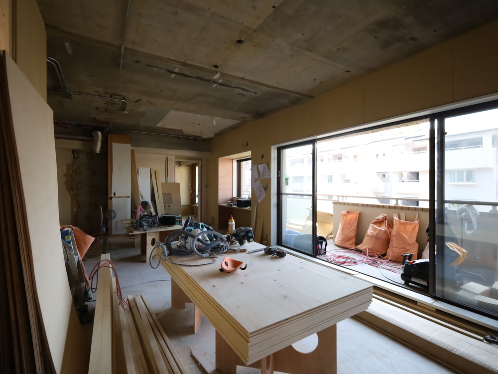 リビングの施工中
