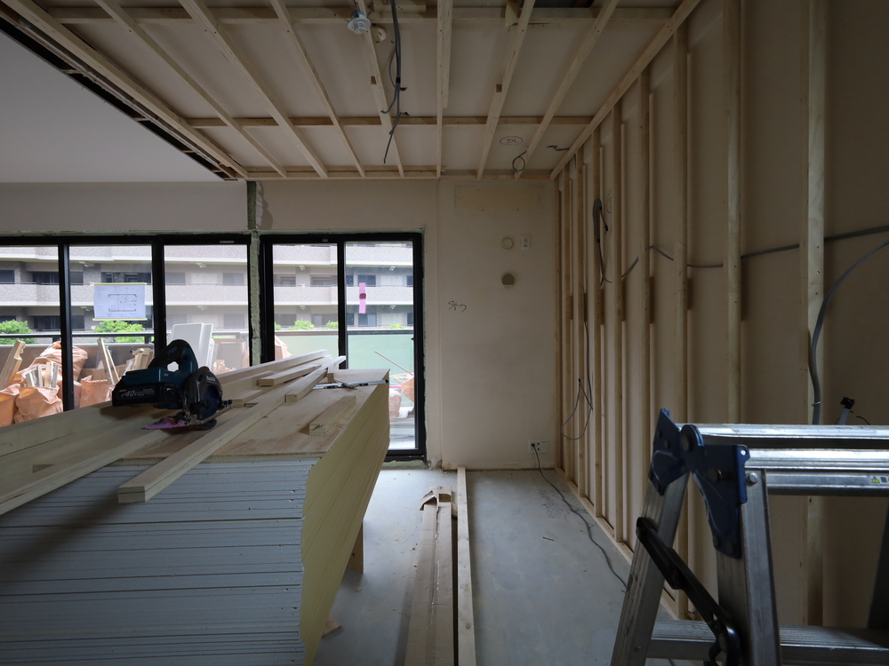 キッチンスペースの施工中