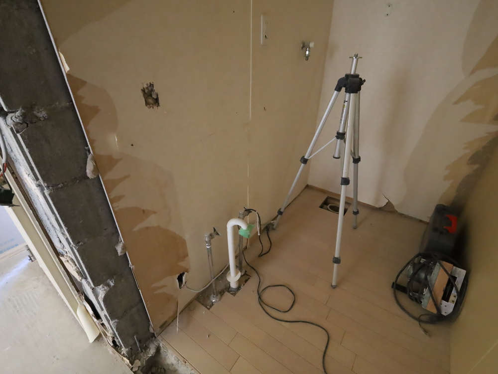 洗面室の施工中