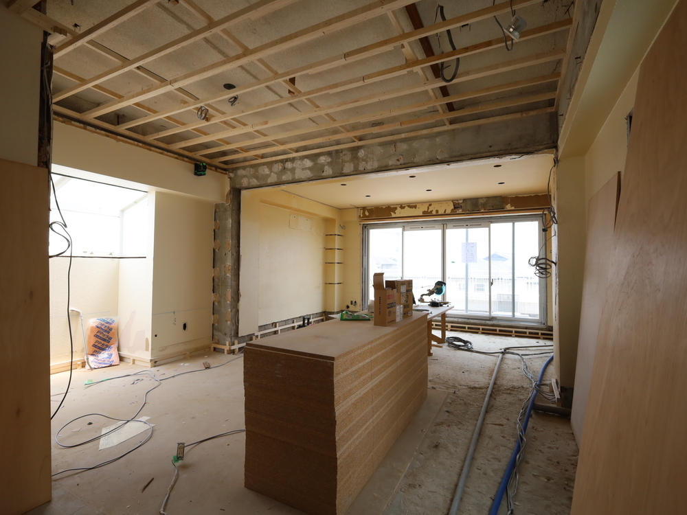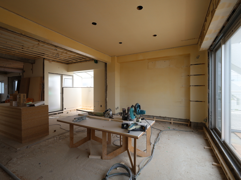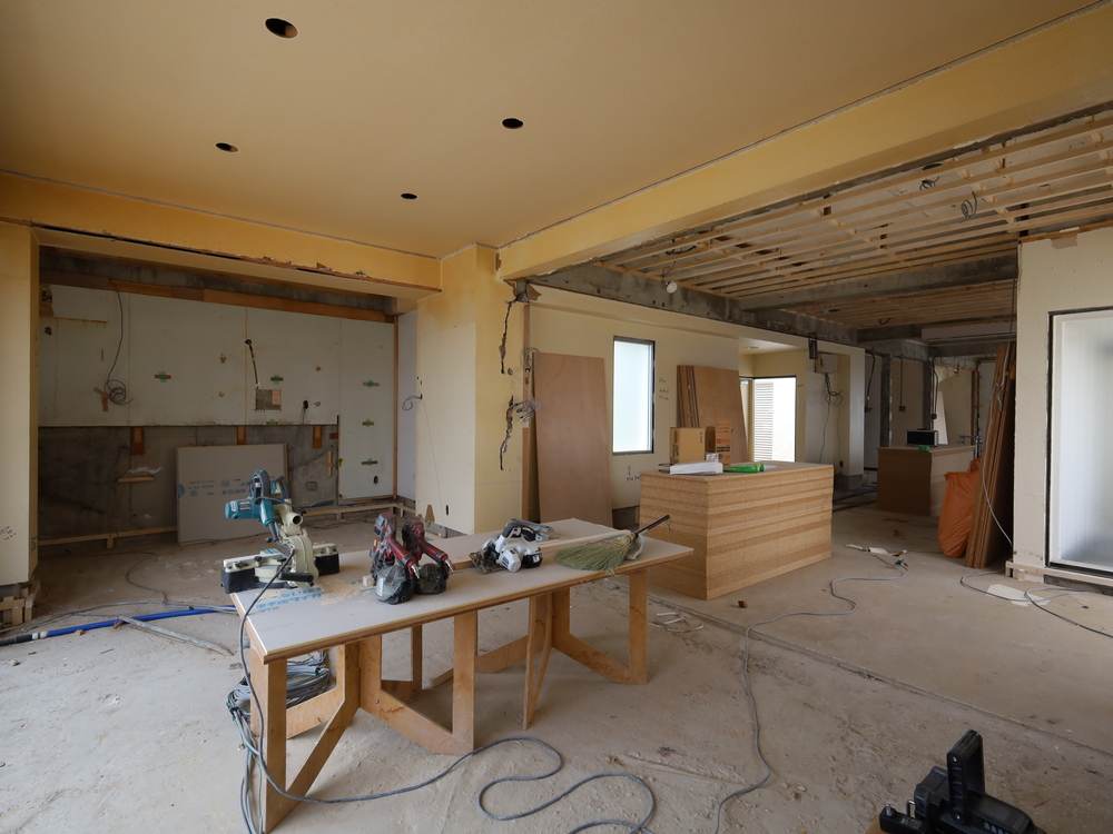 リビングの施工中