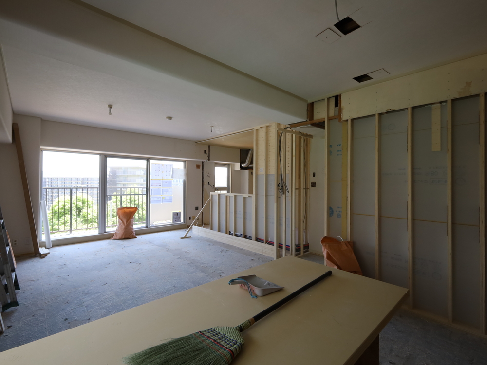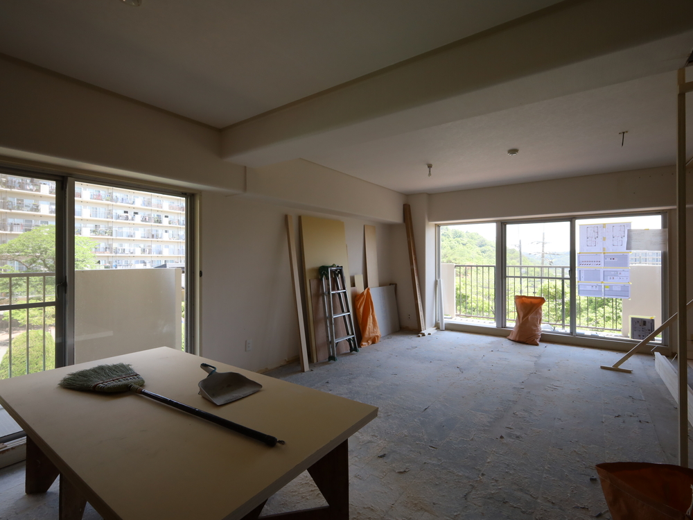 リビングの施工中