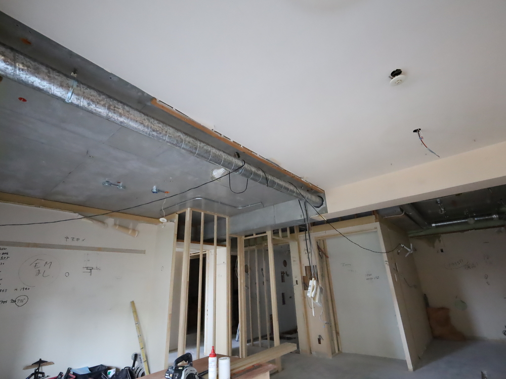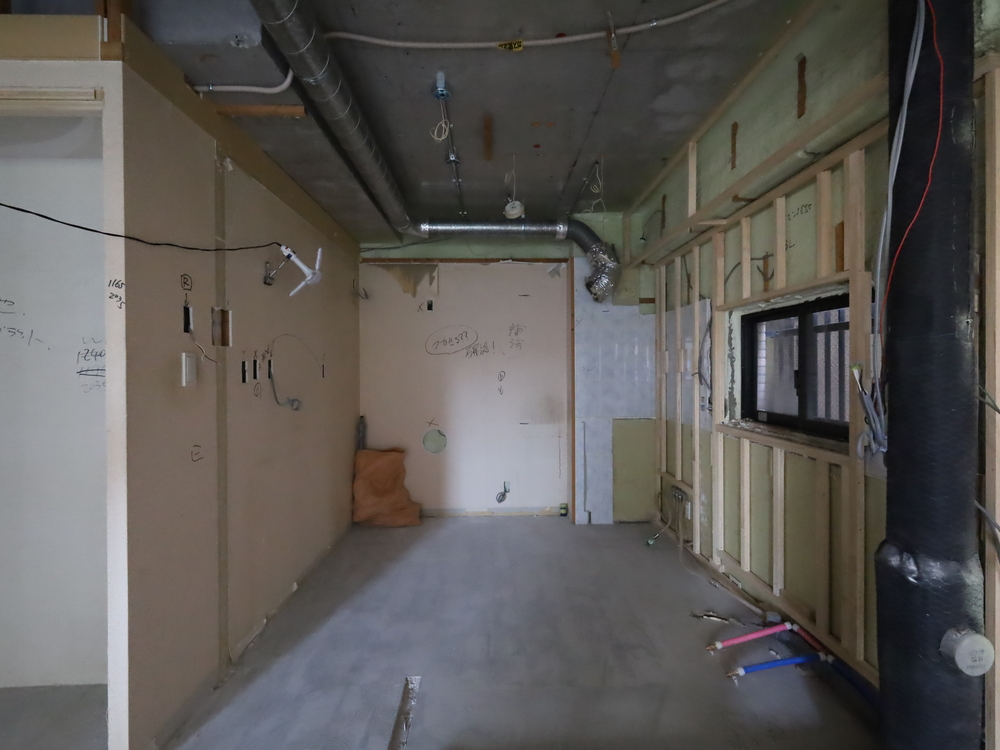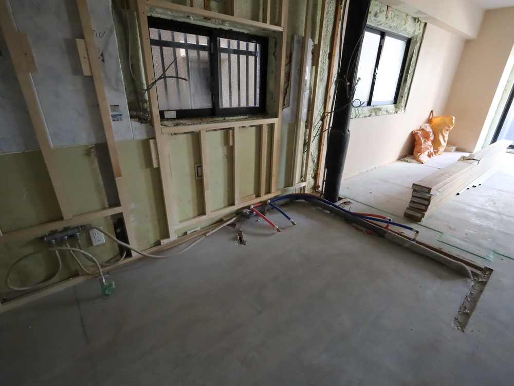 キッチンスペースの施工中