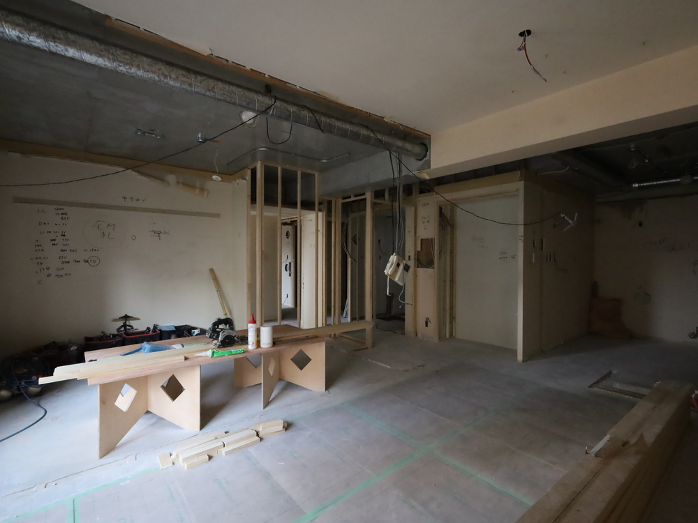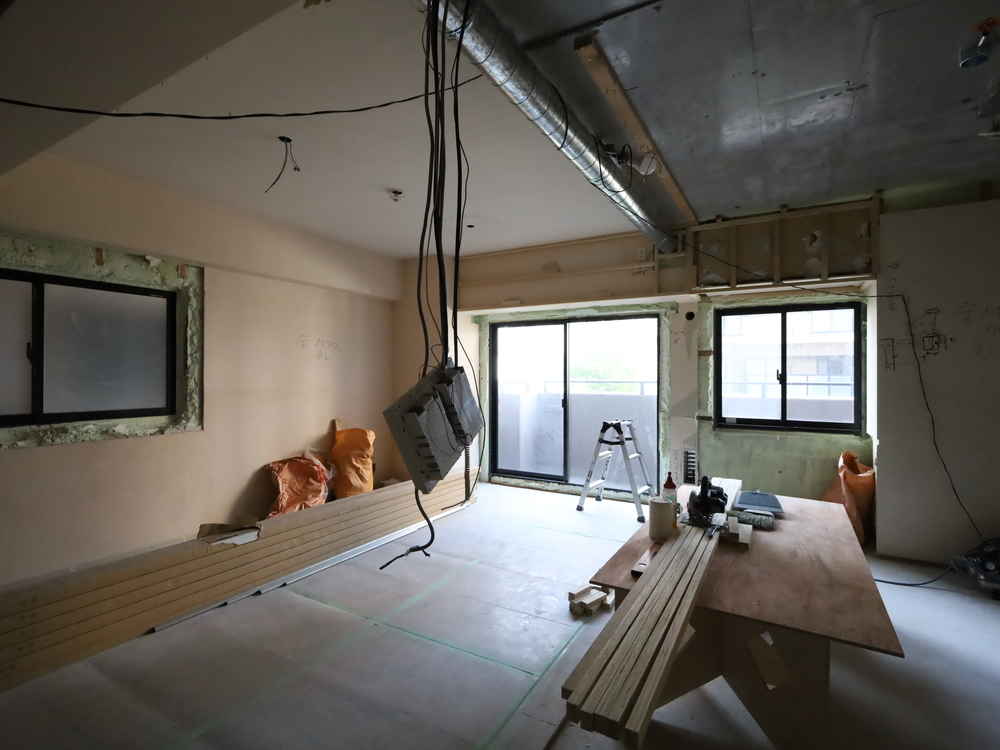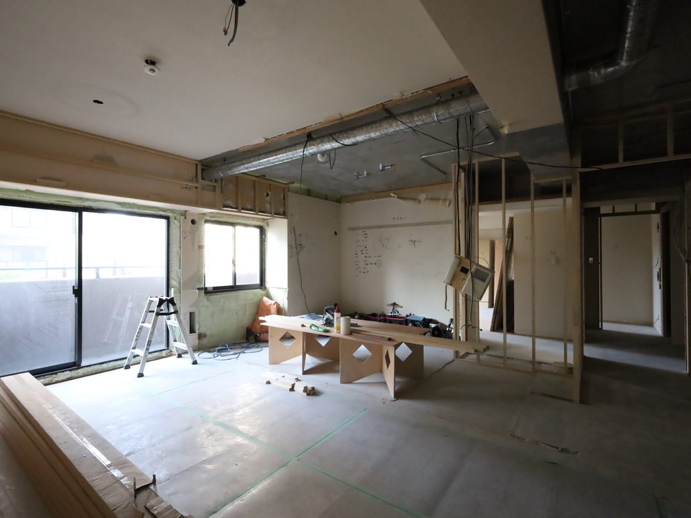 リビングの施工中