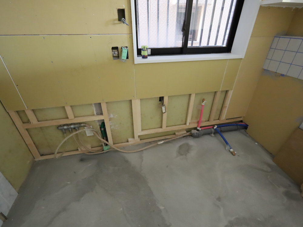 キッチンスペースの施工中