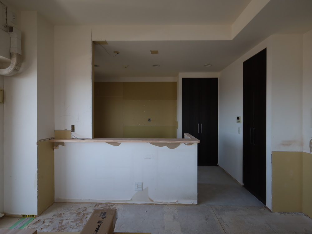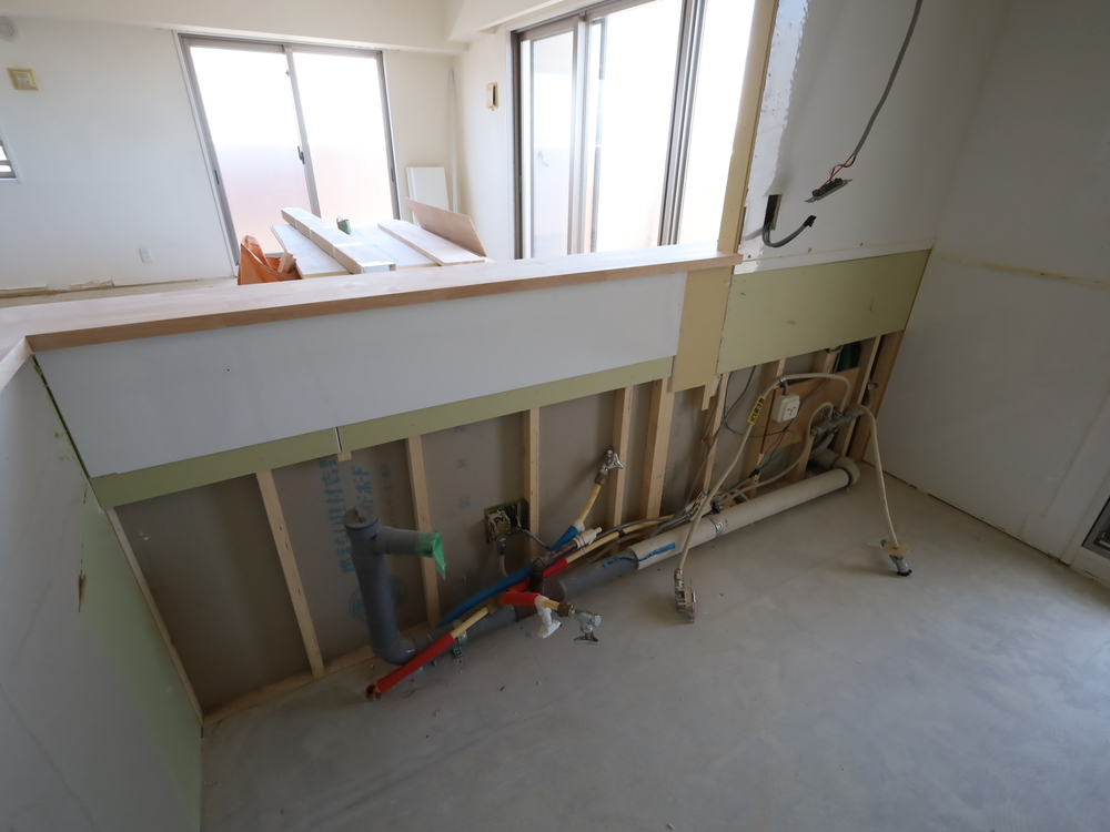 キッチンスペースの施工中