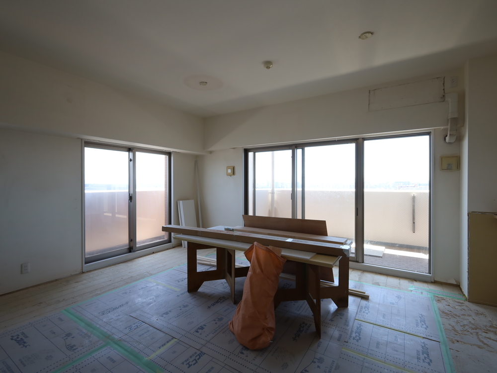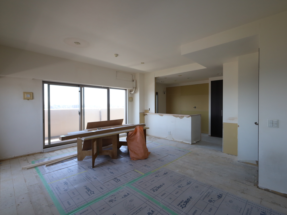 リビングの施工中