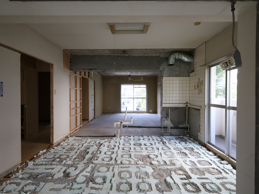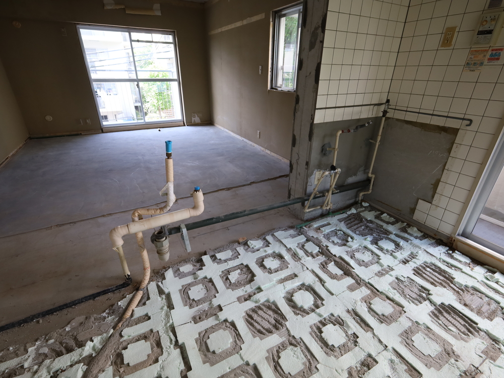 キッチンスペースの施工中