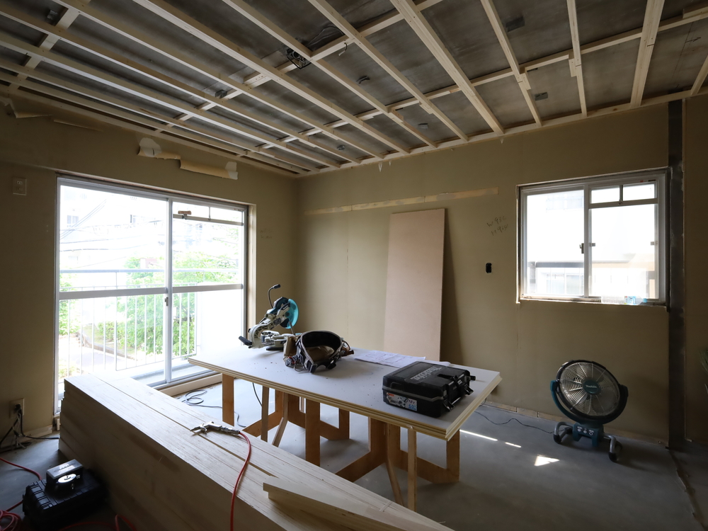 洋室の施工中