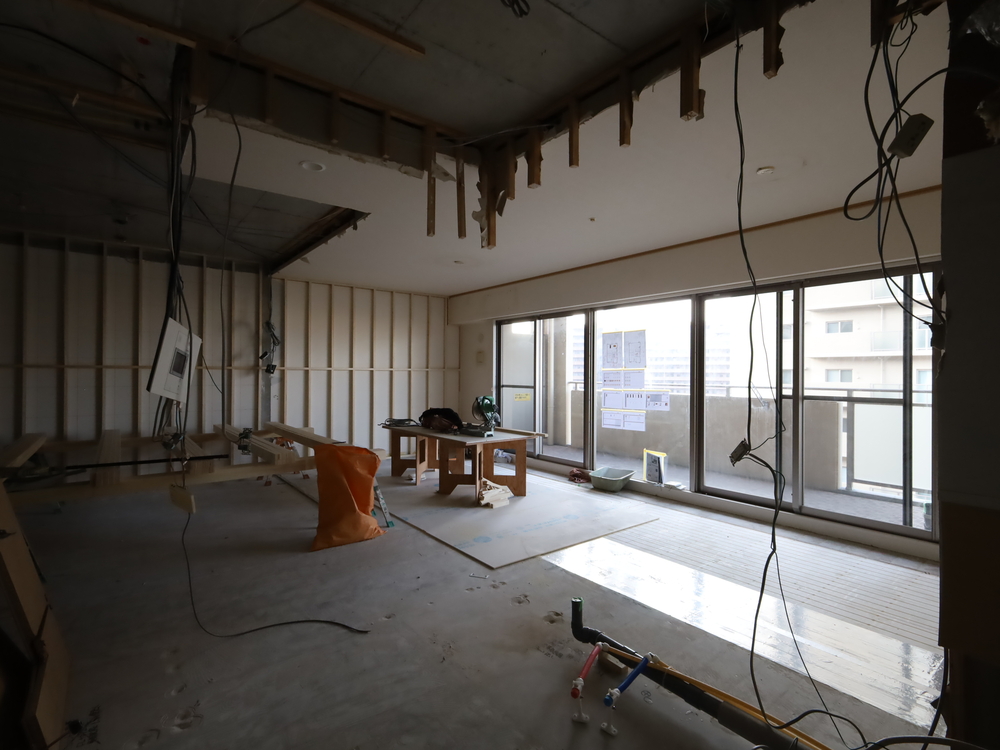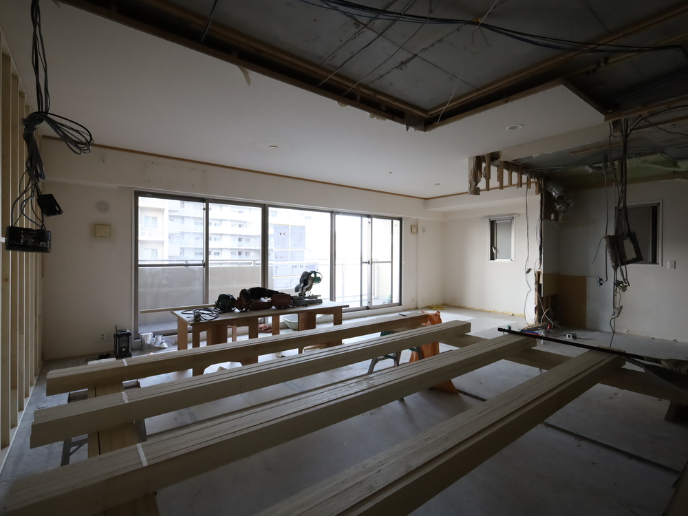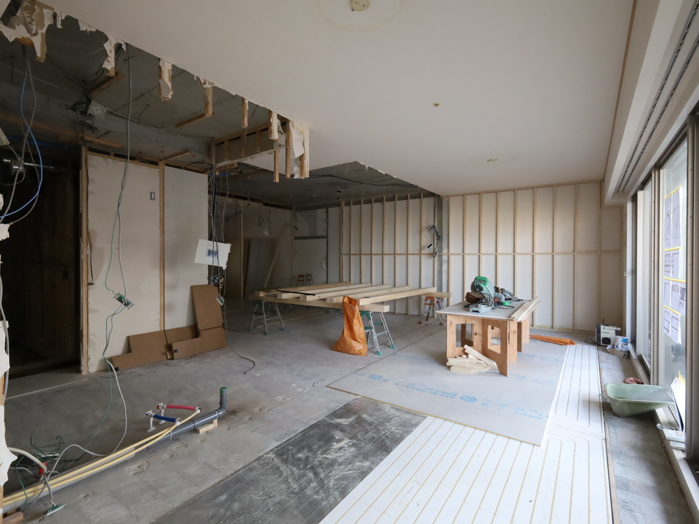 リビングの施工中