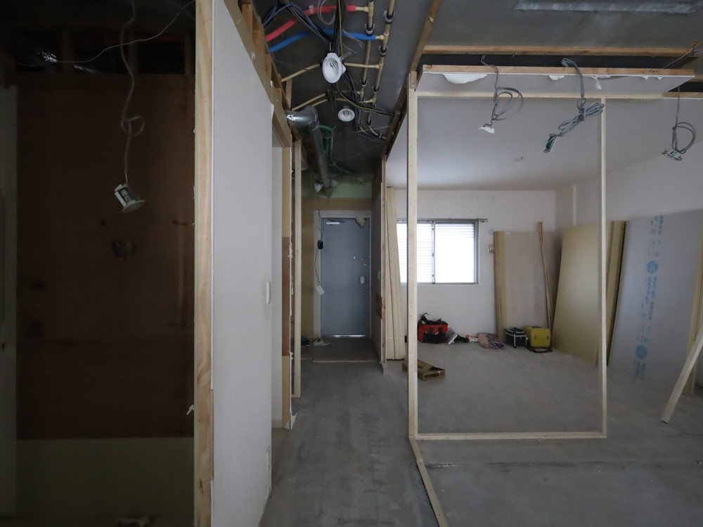 廊下の施工中