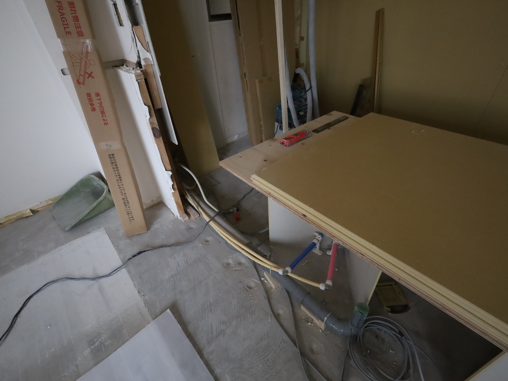 キッチンスペースの施工中