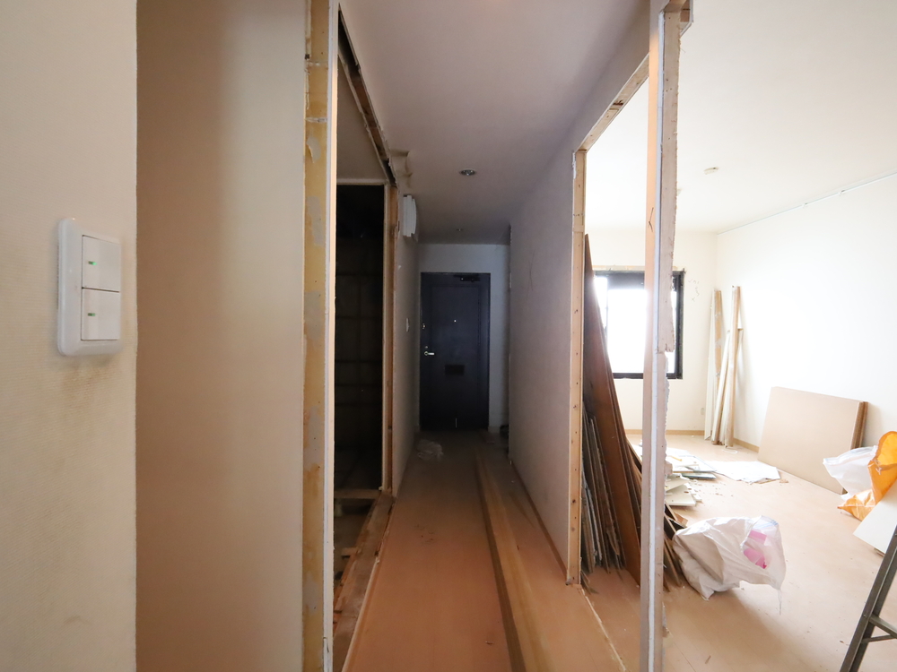 廊下の施工中