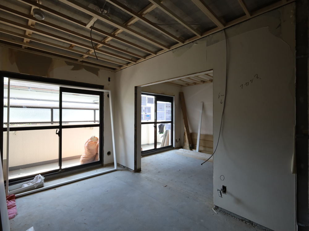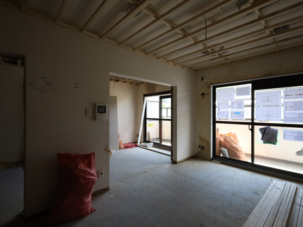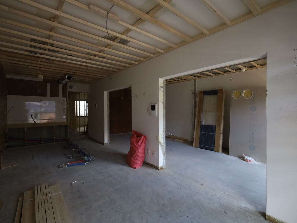 リビングの施工中
