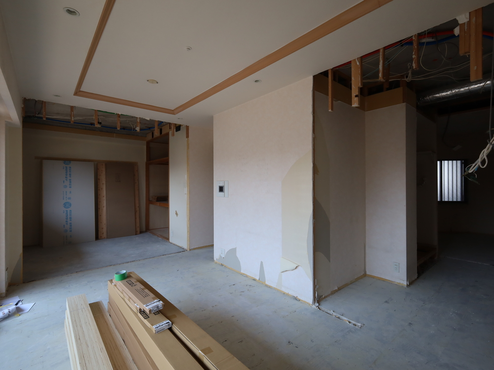 リビングの施工中