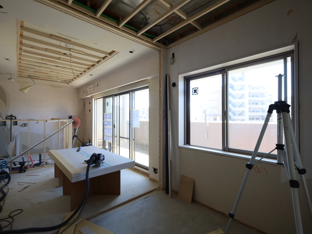 リビングの施工中