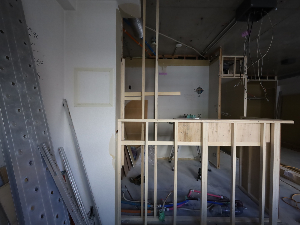 キッチンスペースの施工中