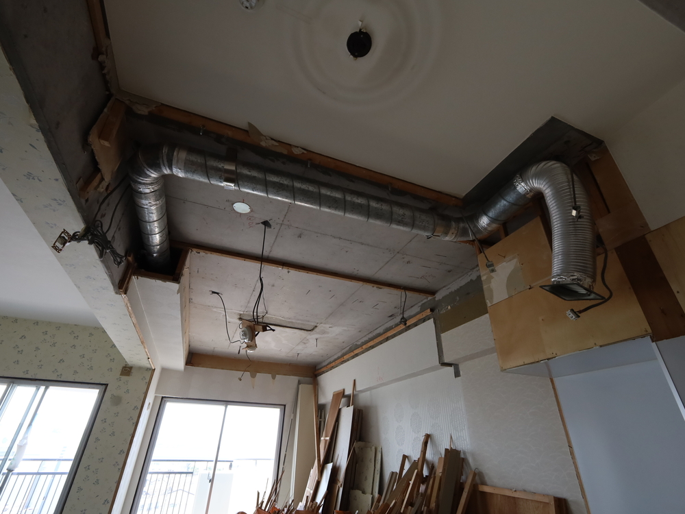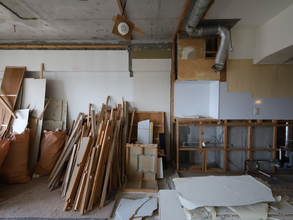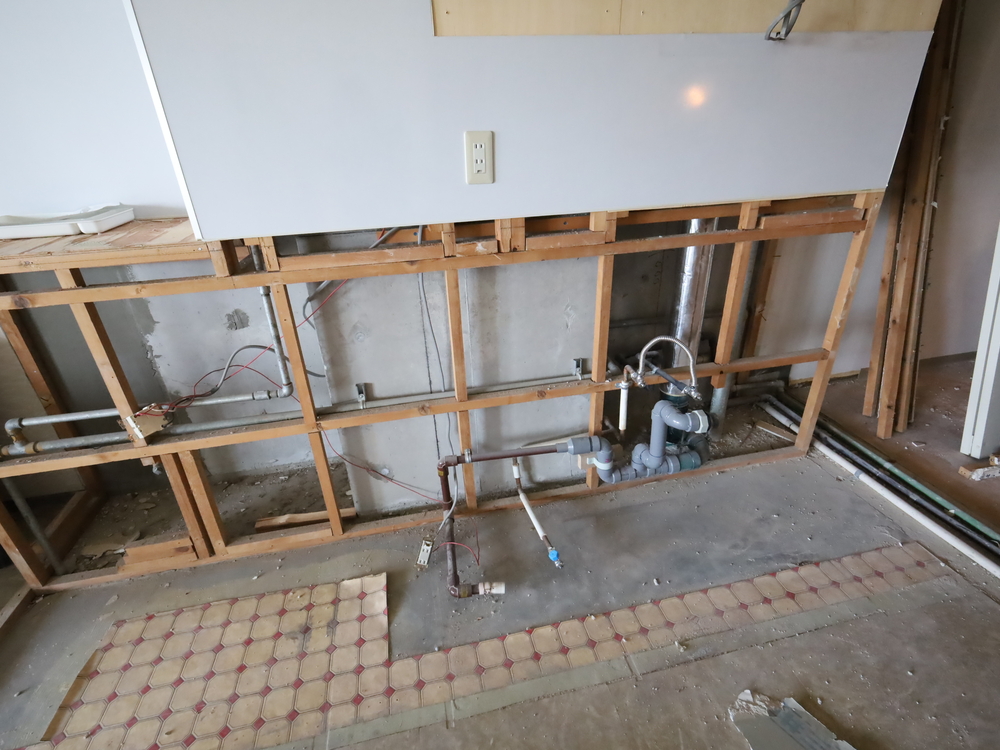 キッチンスペースの施工中