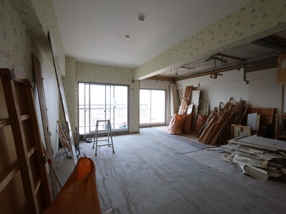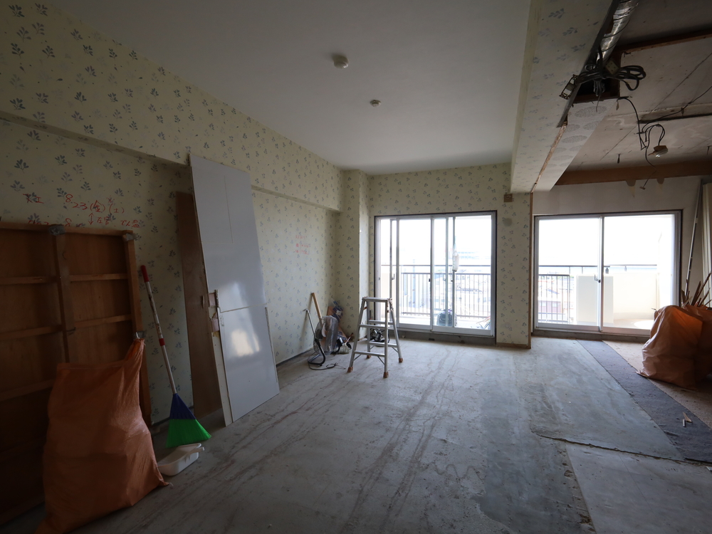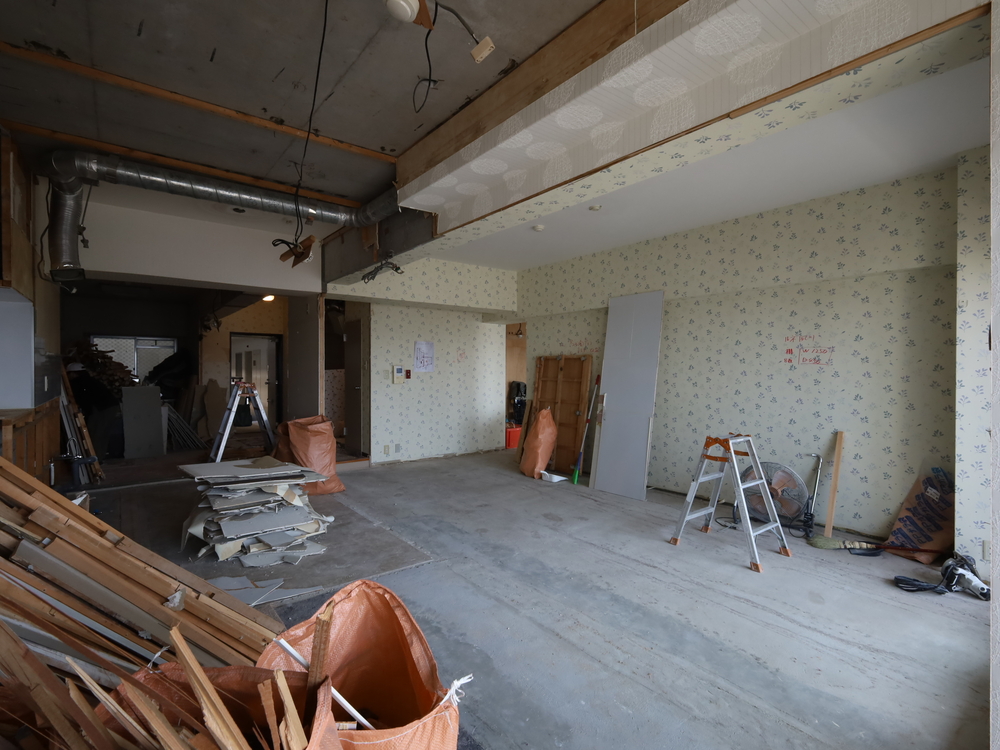 リビングの施工中