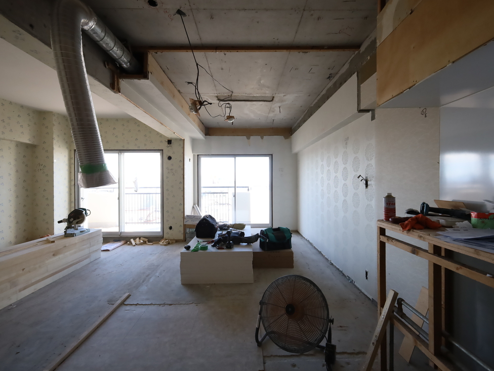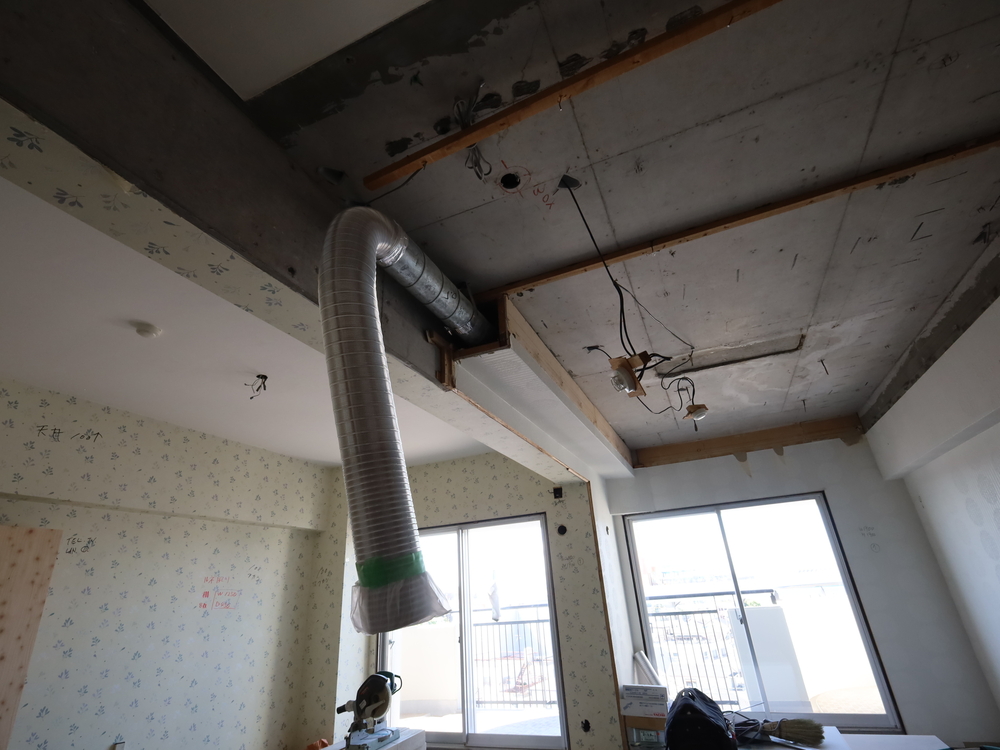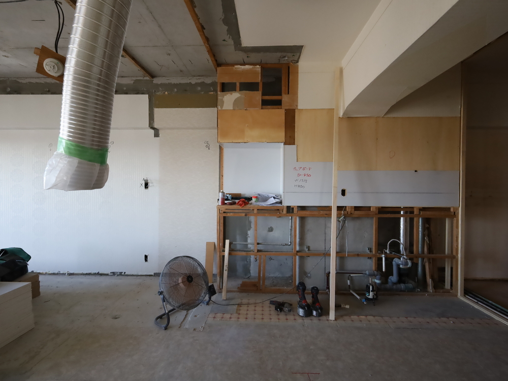キッチンスペースの施工中