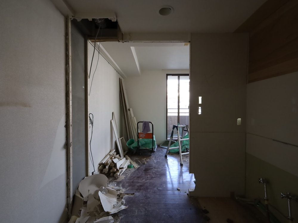 キッチンスペースの施工中