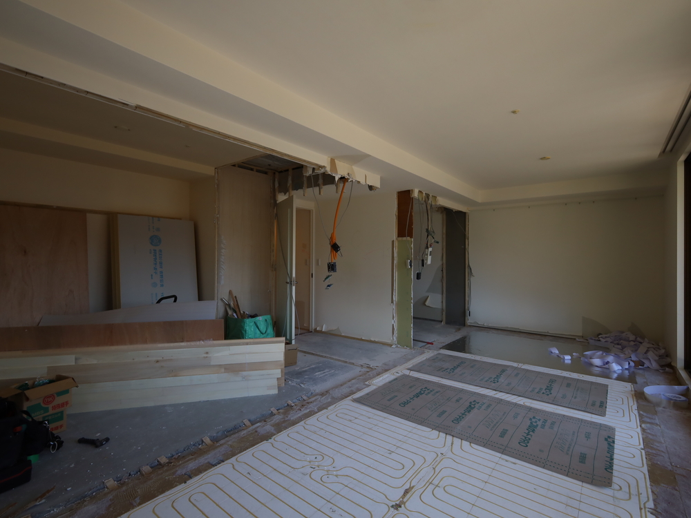 リビングの施工中