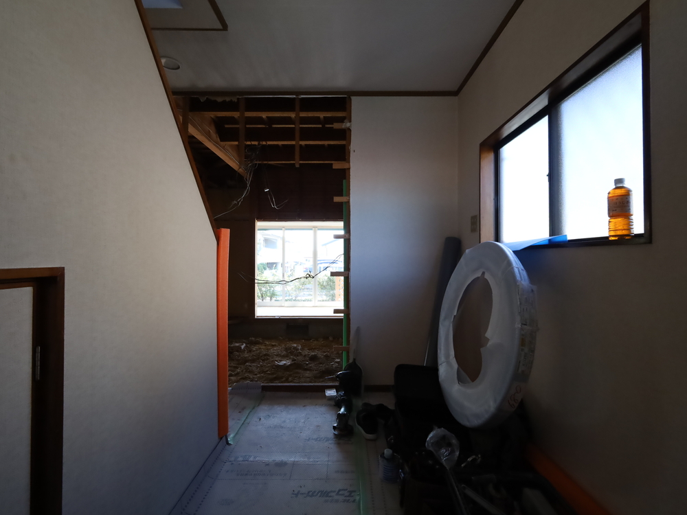 玄関の施工中