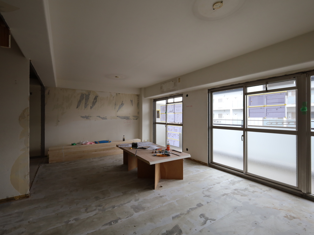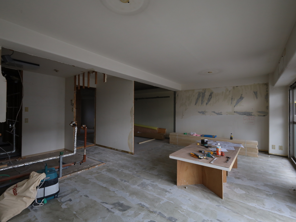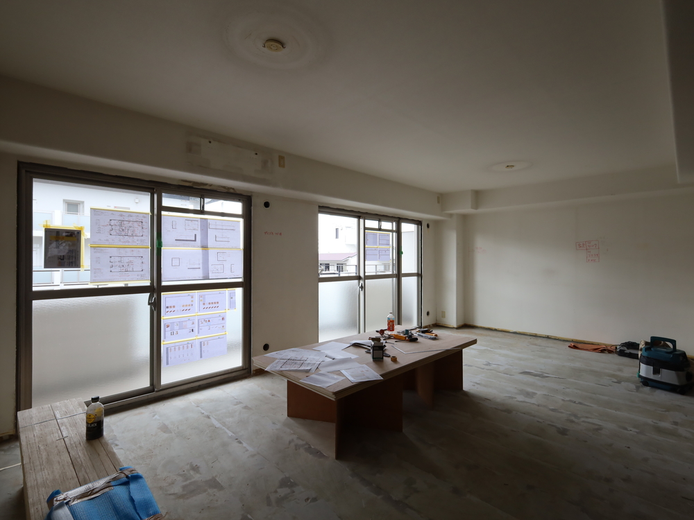 リビングの施工中