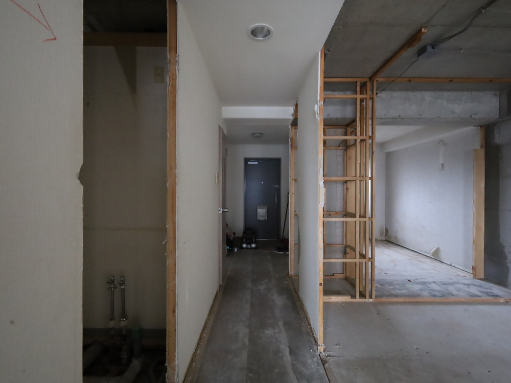廊下の施工中