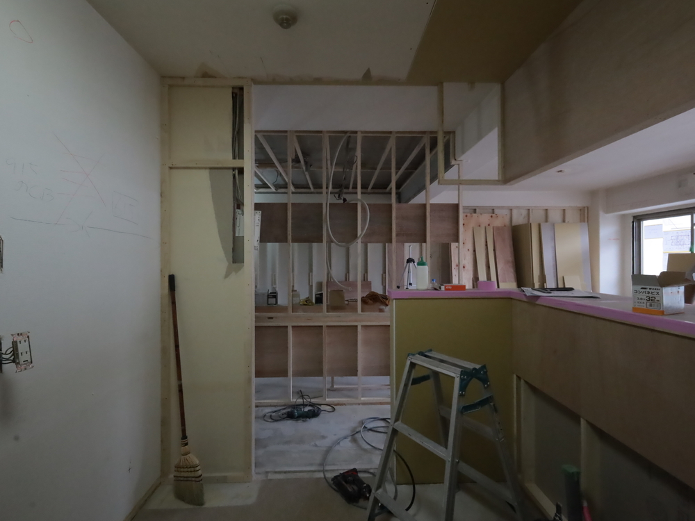 キッチンスペースの施工中