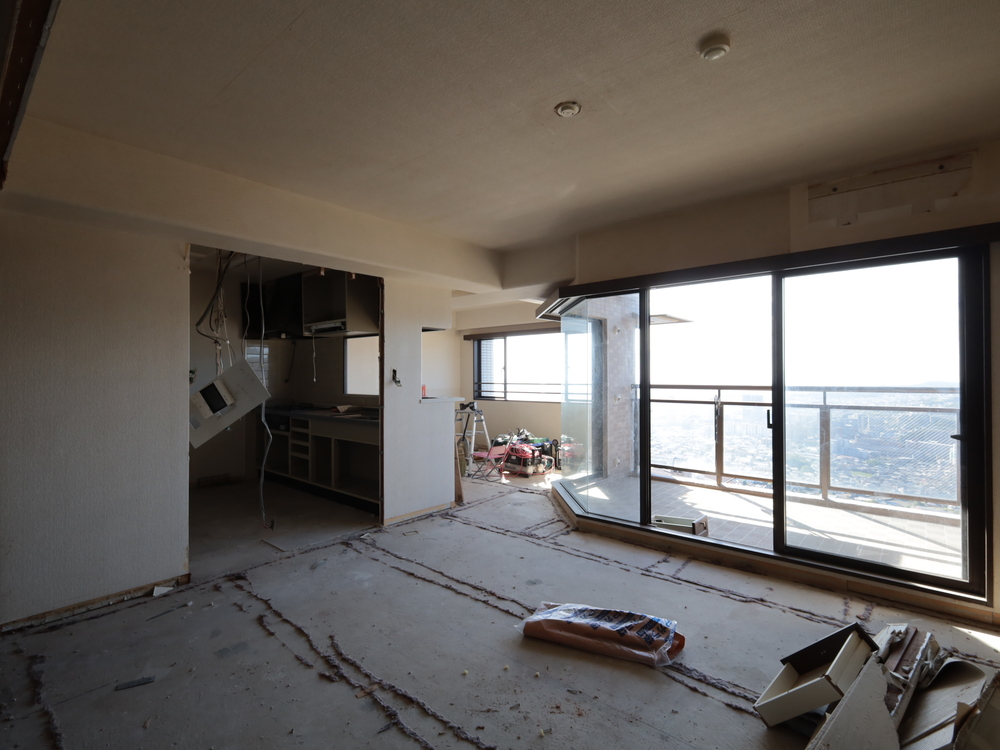 リビングの施工中