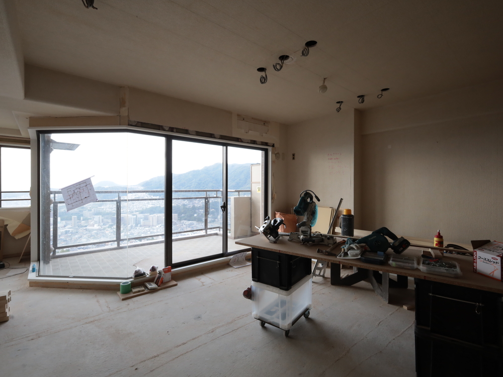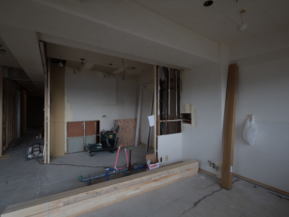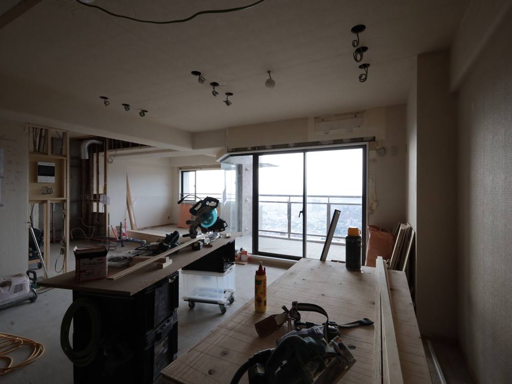 リビングの施工中